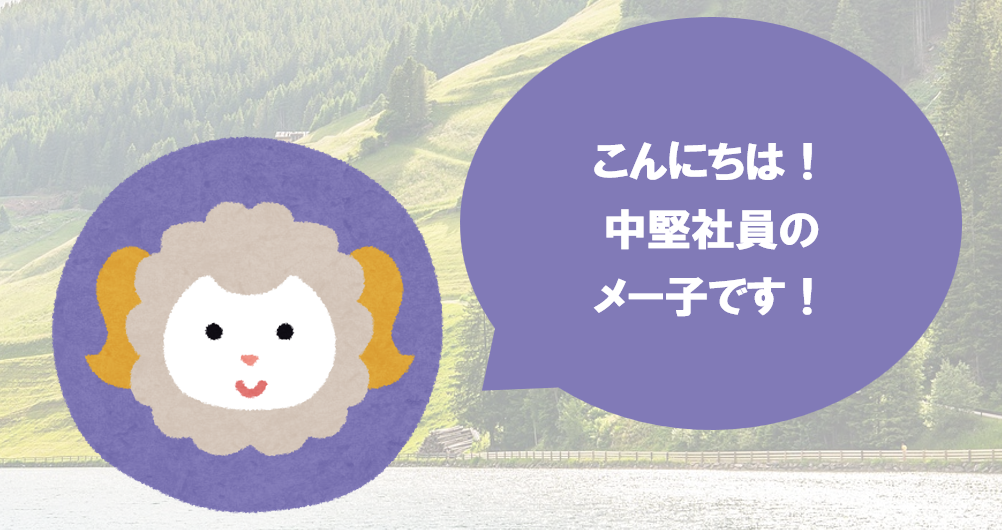 メー子はね、ハララボの中堅女性社員なんだ。彼女の周りには、いつも穏やかな空気が流れているんだよ。