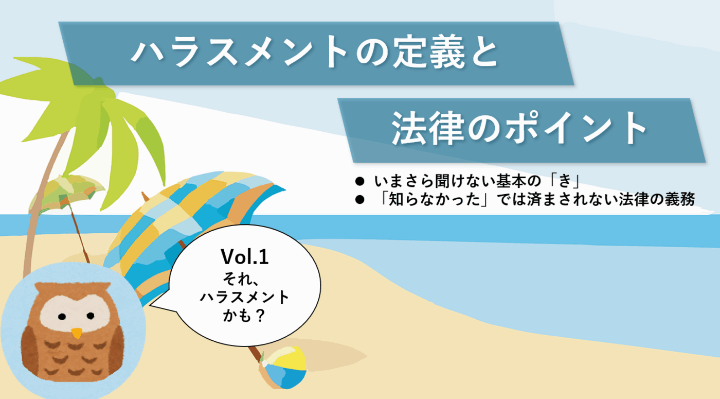 第1回の今回は、全ての基本となる「ハラスメントの定義と法律のポイント」です。
